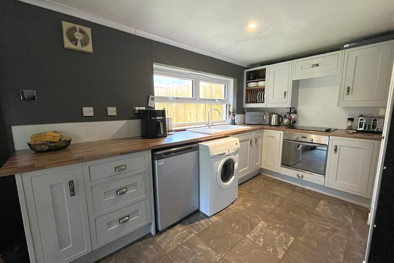 Included in the asking price is all carpets and fitted floor coverings, all light fittings, all shower room fittings, the oven, hob and hood, under-counter fridge in the kitchen, wood burning stove in the lounge. and the two wooden sheds in the garden.
