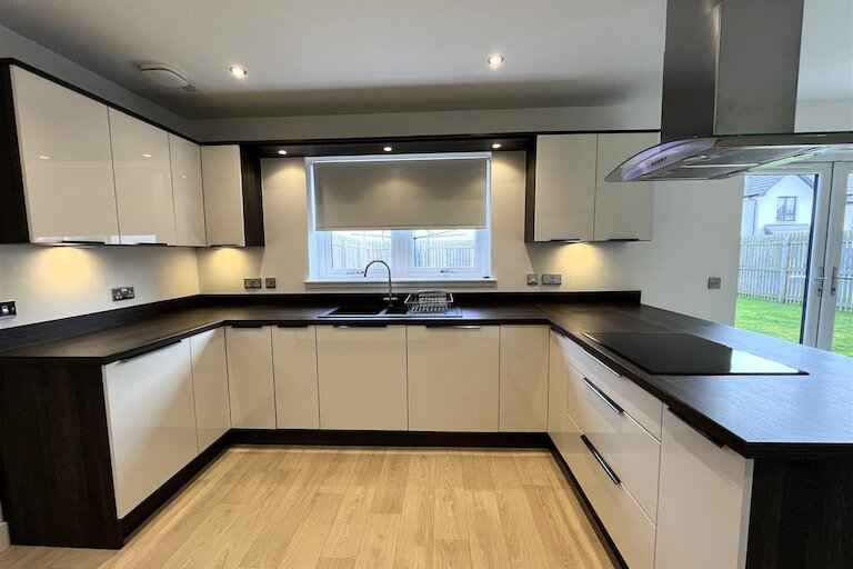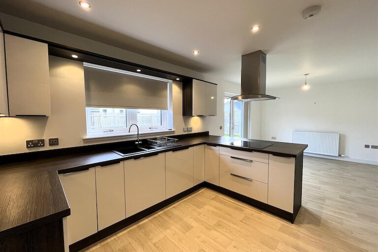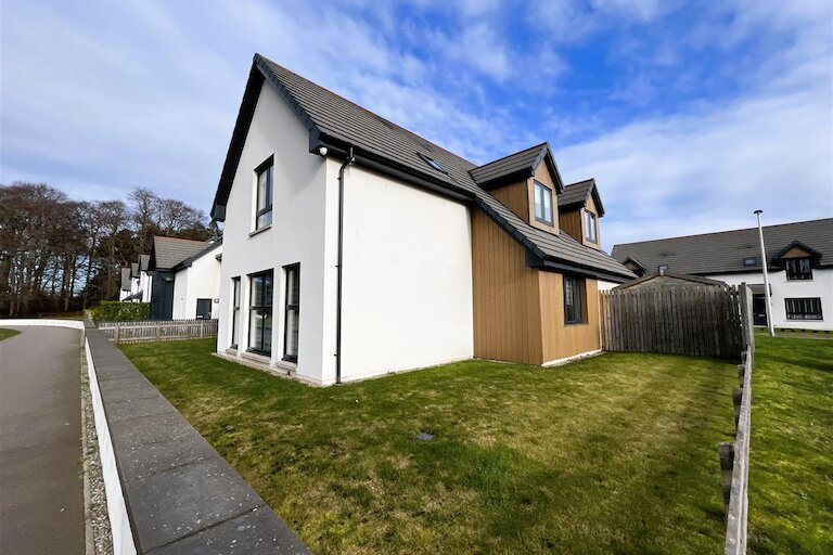 Modern four bedroom family home situated in the popular Springfield "Linkwood Steading" development. The accommodation comprises entrance vestibule, hallway, lounge, dining room, dining kitchen, utility room, guest WC, four double bedrooms (two en-suite) and a family bathroom. The property further benefits from double glazing, air source central heating, integral garage, garden, driveway and an EV charging point.