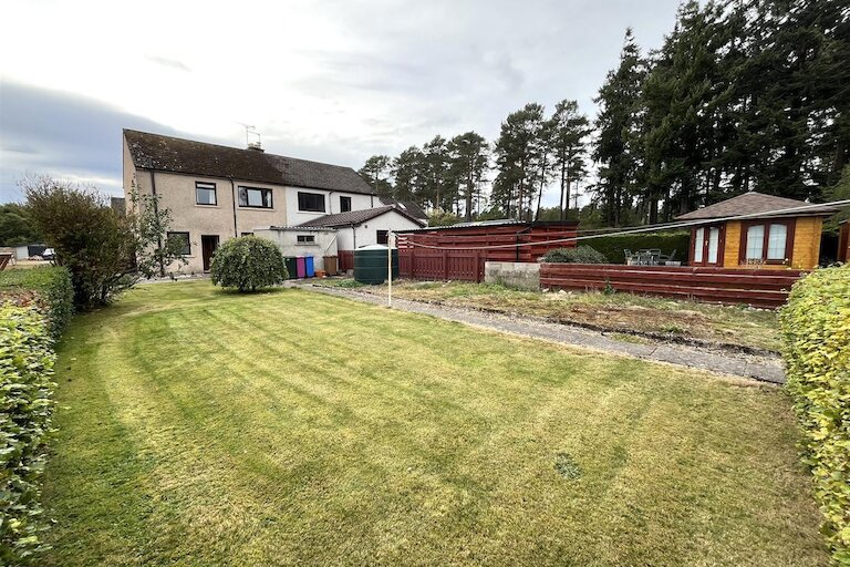 Semi detached house situated in a quiet cul-de-sac in the sought after village of Miltonduff. The property is within the catchment area for Mosstowie Primary School and is only a short two mile drive to the neighbouring town of Elgin. The accommodation comprises entrance vestibule, hallway, lounge, conservatory, kitchen, three bedrooms (one with en-suite shower room) and bathroom. The property, whilst in need of some modernisation, further benefits from double glazing, oil central heating, shared driveway providing off street parking and spacious garden.